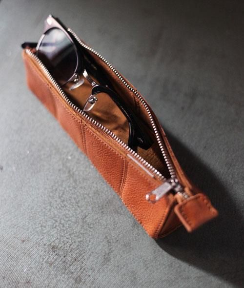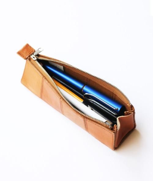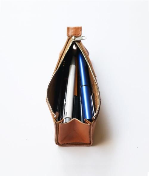 たっぷり収納できるのに見た目がスマートなペンケースは、ミーティングや商談などのビジネスシーンにオススメのアイテムです。また、三角形のフォルムを活かしてアイウェアケースとしてもご利用いただけます。